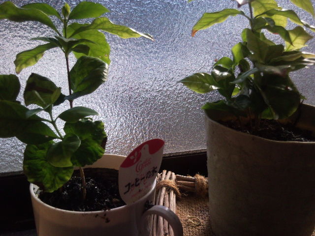 以前紹介した、和田山の花屋さんから買ってきたコーヒーの木を元気なさそうだったから土をかえてわけてみた。うまく成長してほしいな~
